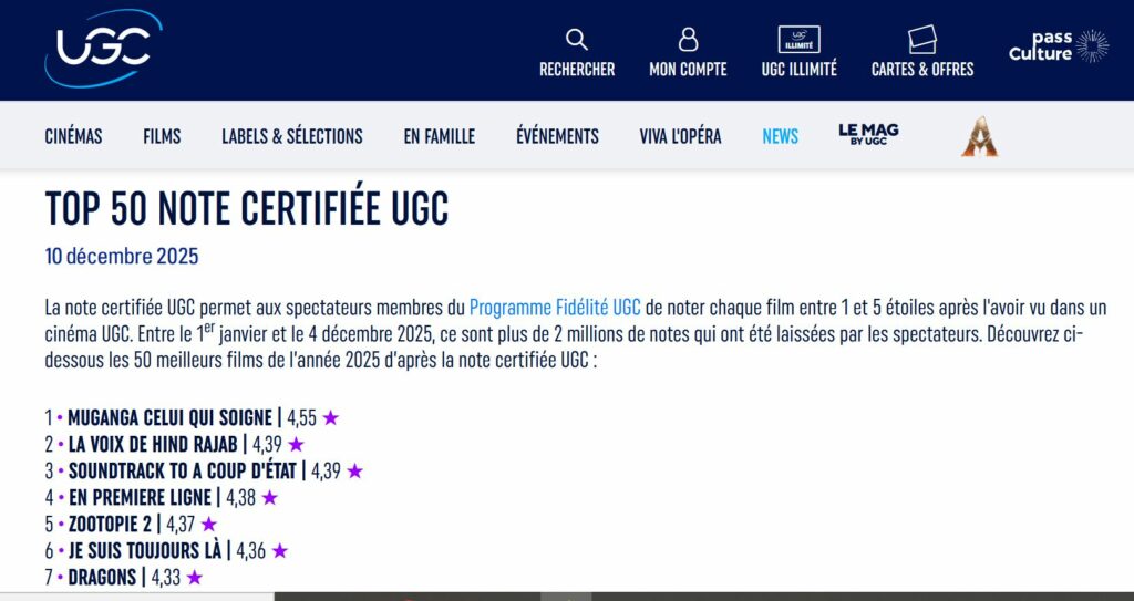 En tête, et de loin, du classement des spectateurs d’UGC pour 2025. Chapeau bas à Marie-Hélène Roux et Jean-René Lemoine.